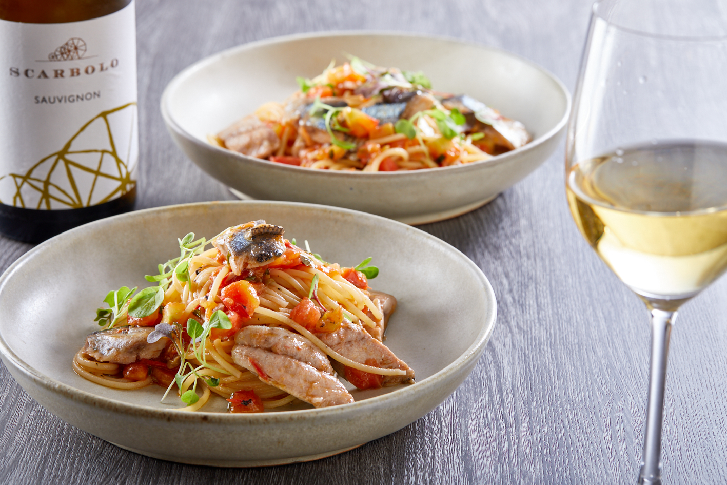 秋刀魚とフレッシュトマトのパスタ -