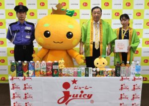 抽選は、橋本明利会長らが行った。「ジューシー日本のくだもの」「ジューシー日本のりんご」「ジューシートロピカルマンゴー」「ジューシー収穫野菜PLUS16種類の果実と野菜」「ジューシーみかんラテ」をランダムに110人、特別賞として「ジューシーくんグッズセット」を5人、計555人の当選者を決めた。当選者への賞品発送は9月下旬を予定する。