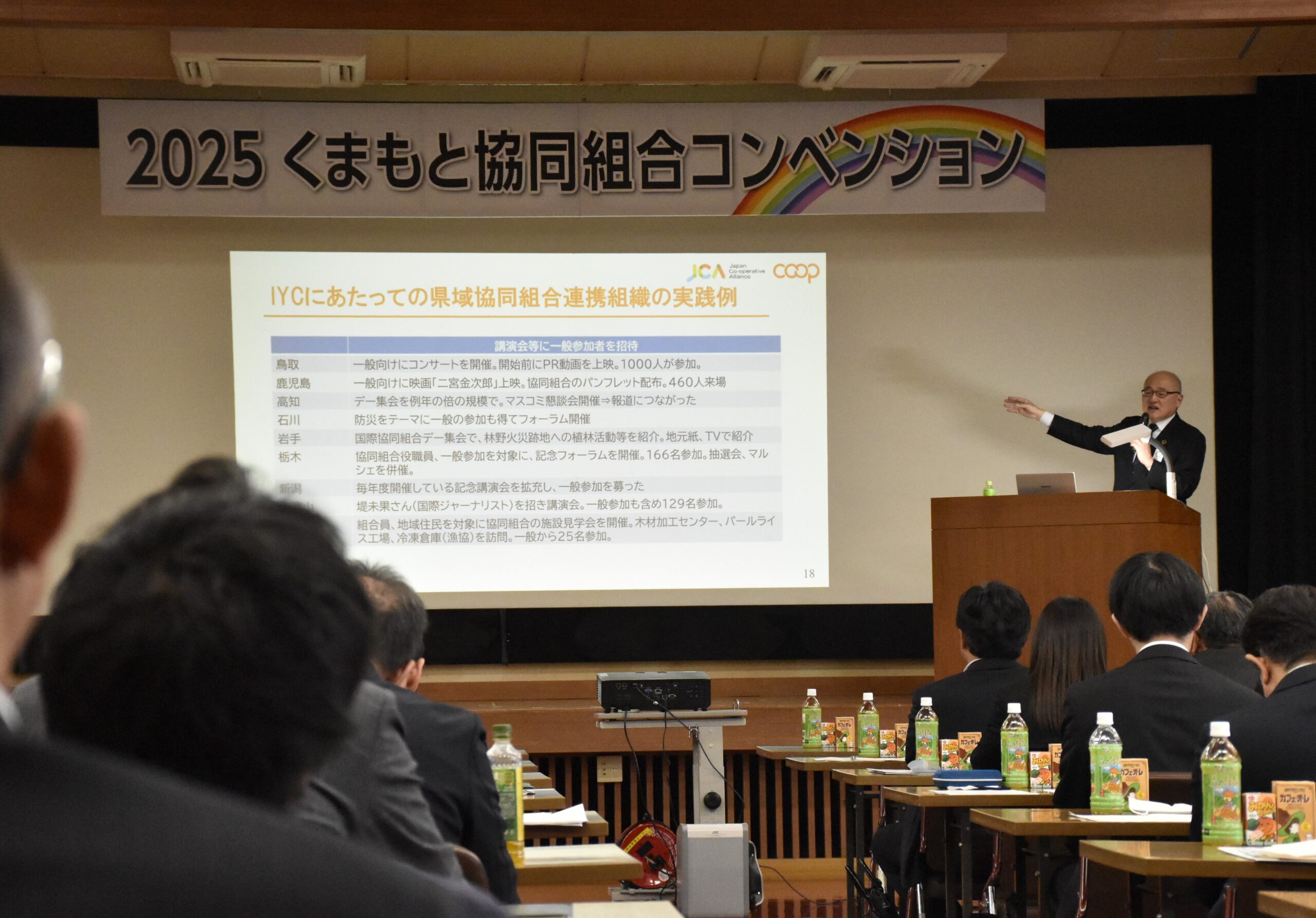 日本協同組合連携機構(JCA)の比嘉政浩専務が「協同組合間連携とIYC2025の取り組みについて」と題し講演。全国域や各都道府県での国際協同組合年(IYC2025)の取り組みについて紹介した。各構成団体がそれぞれの活動・事業内容などを紹介した。