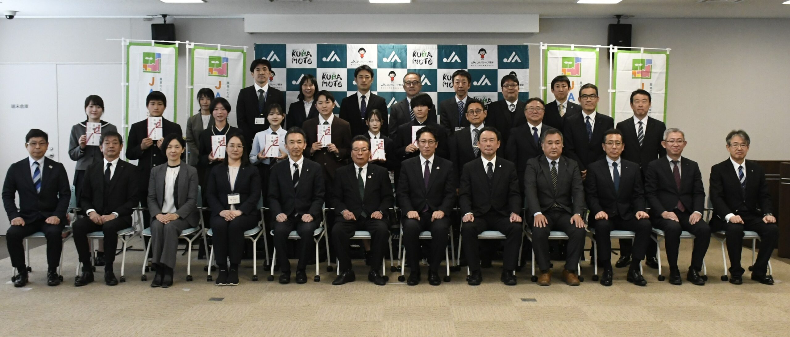 JAグループ熊本は、県内7農業高校に農業用機材12点を贈った。9日、贈呈式を熊本市のJA熊本県会館で開いた。県教育庁の関係者、校長、農場長、生徒、JAグループ熊本役職員ら38人が出席。JA熊本中央会の宮本隆幸会長とJA共済連熊本の橋本明博本部長が、各校代表に目録を手渡した。