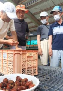 栗を担当するJAの宮川翔職員は「部会員が個別で徹底して行う収穫後の水処理は、病害虫・腐敗果を取り除くための作業の軽減と鮮度保持に繋がっている。集荷時には検査員が品質検査を徹底して行っているので安心して食べていただきたい」と話した。