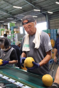 JA竜北梨部会の永田一成部会長は「近年で最高の梨に仕上がっている。暑い日が続くので旬の梨を味わってほしい」と語った。