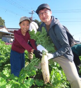 JAあまくさ女性部大矢野総支部は1日、上天草市大矢野町でダイコン収穫体験を開いた。今回で3回目。50人が参加し、同部員が管理する約5アールの畑で約250本を収穫した。熊本市から親子で参加した小学生は「ダイコン畑を初めて見た。取れたダイコンはおでんにして家族で食べたい」と笑顔を見せた。