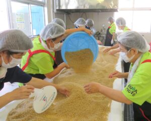 JAたまな女性部は9月上旬の3日間、みそ加工場で手作りみそ約250キロを仕込んだ。各支部の支部長とJA生活指導員らが参加。1月下旬から管内の小・中学校の給食センターへ配布する予定だ。