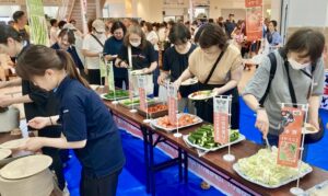 担当した河津勝職員は「販売・試食ともに好評で、消費者に阿蘇の夏秋野菜や世界農業遺産のPRができた。今後も阿蘇の誇る農産物のおいしさを発信していきたい」と話した。