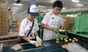 生徒らは、米の品種の選別作業や2025年から本格始動する大型ラック式農業倉庫「米夢(まいむ)」見学の他、アスパラガスの選果やトマトの出荷作業を体験した。
