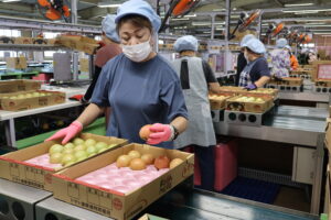 JAやつしろトマト選果場利用組合で10月上旬、冬春トマト出荷量日本一のブラント「はちべえトマト」の出荷が始まった。はちべえトマトを145戸で生産する同組合は、6月中旬までの総出荷量約2万トン(前年比100%)を予定する。
