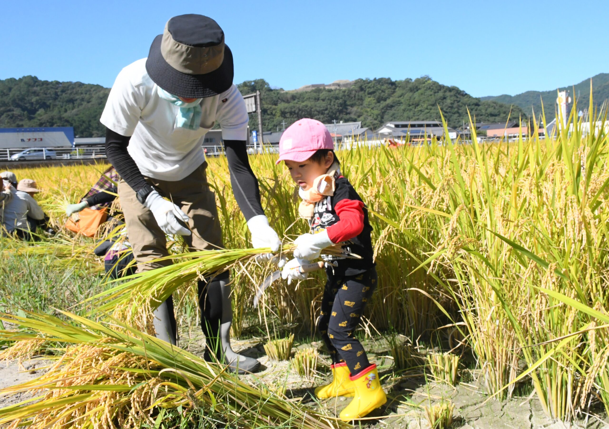 JAあしきたは11日、農作業体験を通じ「農業の大切さ」を学んでほしいという思いから、芦北町内の田んぼで稲刈り体験を実施した。管内外から約20人が参加し、鎌を使った稲刈りなどを体験した。JA農畜産課職員が参加者に鎌の扱い方や稲の刈り取り方法を説明した後、県産ブランド米「くまさんの輝き」の収穫体験を行った。大人も子どもも最初は慣れない鎌の取り扱いに苦戦したが、時間がたつと軽快に稲を刈り取れるようになった。体験後には新米のおにぎりを試食し「いい香り」と口にしながら、おいしそうにおにぎりを頬張った。