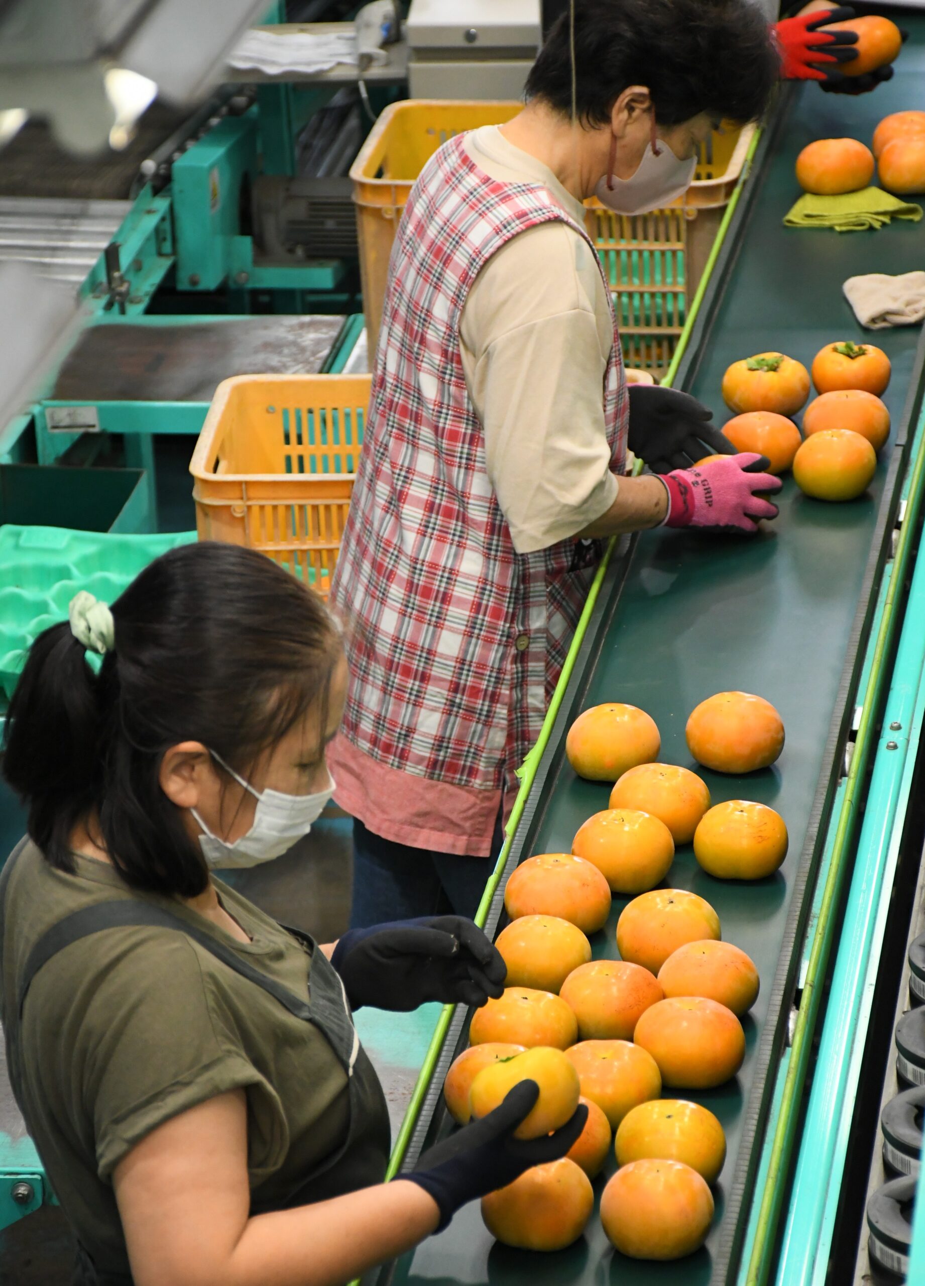 JAあしきたは10月中旬、甘柿「太秋」の出荷をマルタ選果場(芦北町)で始めた。主に、関東や熊本県内の市場へ出荷する。出荷・販売は12月中旬まで続き、総販売数量は24トンを計画する。