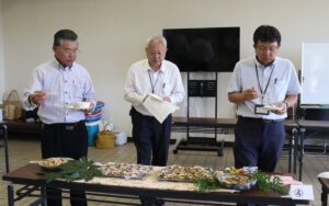 JA阿蘇女性部は10月中旬、中部営農センターで第9回料理コンテストを開いた。同コンテストは、地元の農作物を使用し、地産地消運動の促進を図るとともに、JAふれあい食材のさまざまな活用法の共有、普及拡大を目的に毎年開催。今年は、ふれあい食材(肉、魚)を使った「スタミナ料理」をテーマに、管内7支部がアイデアを詰め込んだ献立で競い合った。厳正な審査の結果、高森支部が考案した「ナスカツ」と「花見大福」が最優秀賞に輝いた。