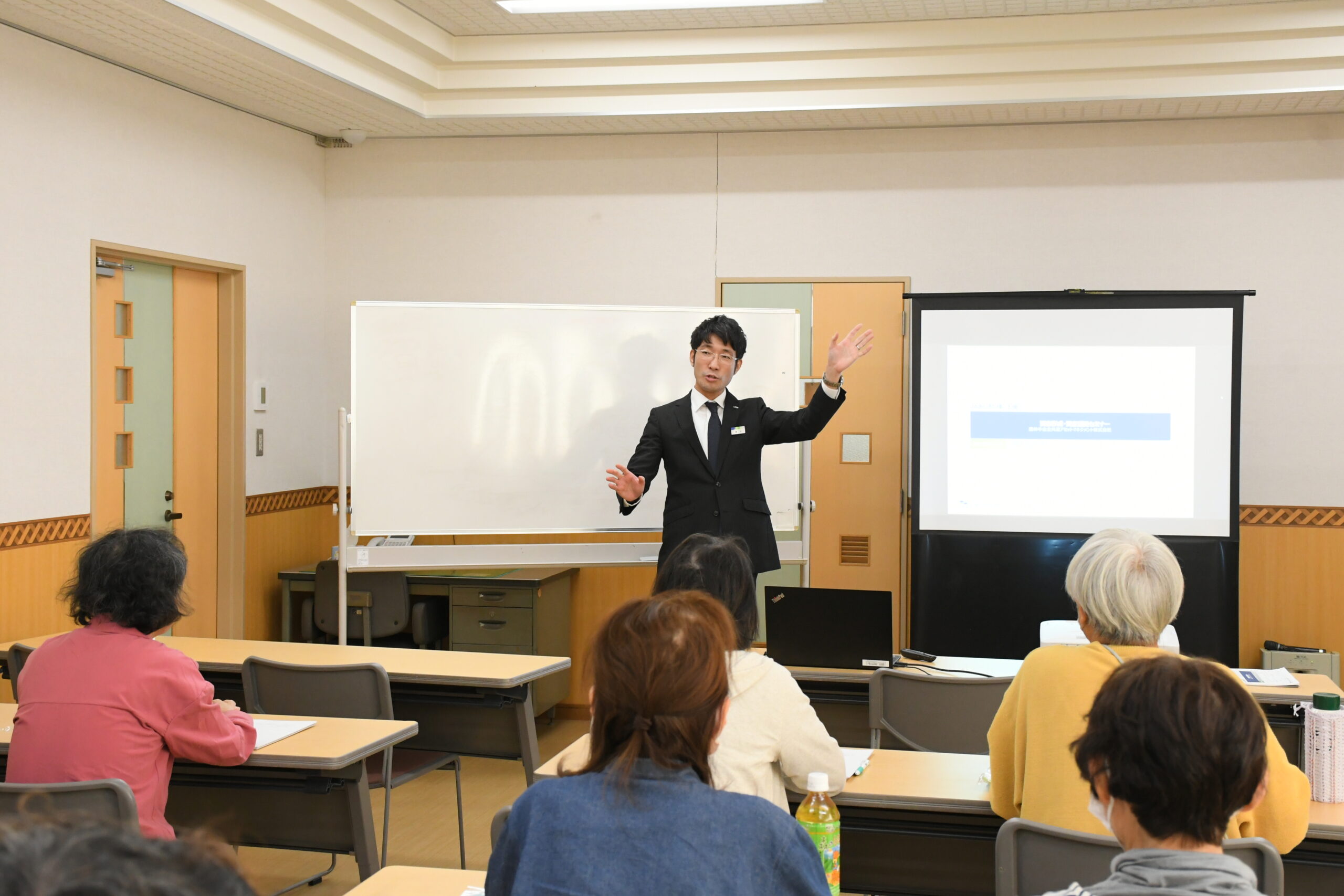農林中金全共連アセットマネジメントの廣中東悟さんを講師に招き、資産運用の基礎知識の他、NISA制度や自分に合った運用方法などを分かりやすく説明。参加者は「身近な例えで分かりやすかった」「家族と相談して始めてみたい」と話した。