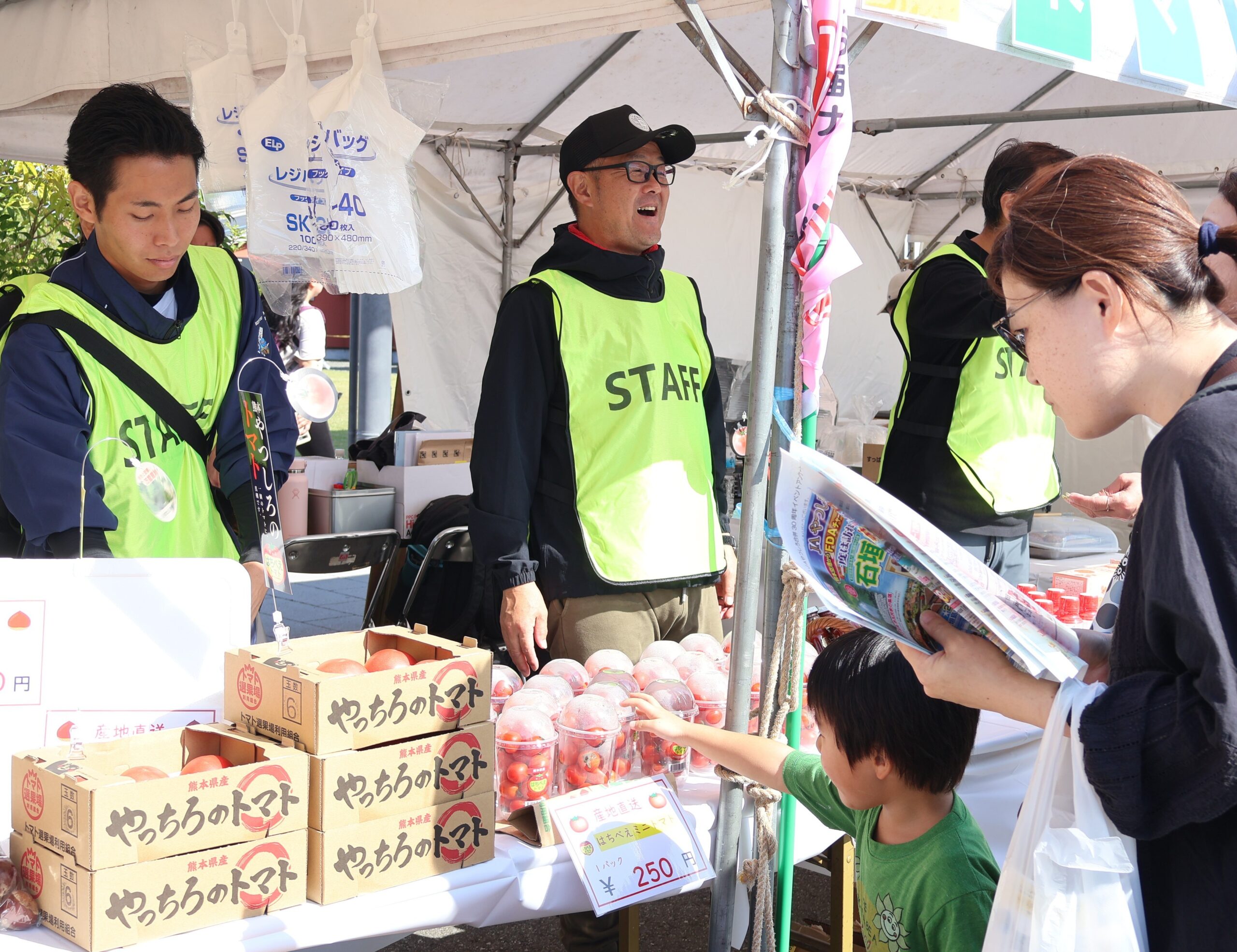 JAやつしろは10月下旬、八代市のくまモンポート八代で「JAやつしろ合併30周年記念イベント」を開いた。「みなと八代フェスティバル」と同時開催となり、会場は多くの来場客でにぎわった。会場では、特産のトマトやブロッコリーなどの露地野菜、トマト加工品の販売が行われ、いずれも完売となった。