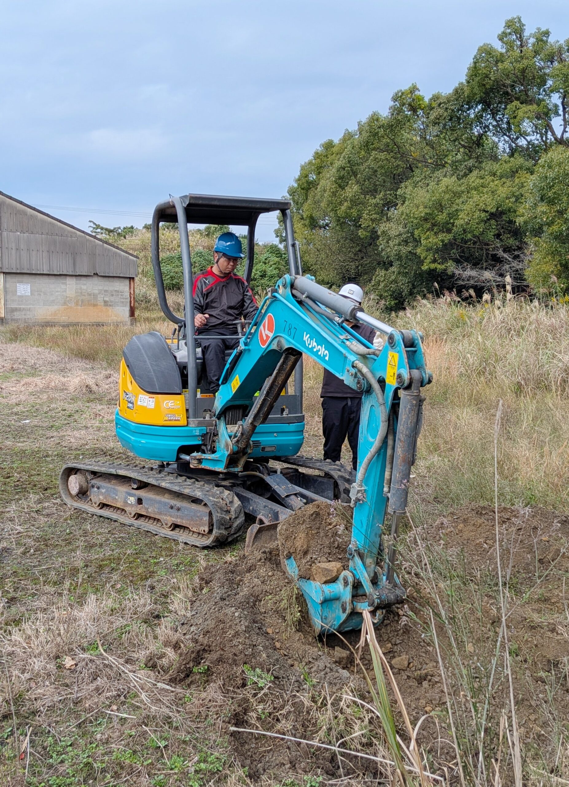 実技では、参加者が順番に運転席に乗り込み、インストラクターの指導を受けながら掘削や整地の操作を体験。初めて操作する参加者も多く、緊張した面持ちでレバー操作を確認した。受講者には修了証が交付され、今後は農作業や施設整備などで安全に機械を活用できるようになる。