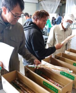 JA販売担当の石原誓志郎さんは「生産者と市場をつないで情報を共有し、年末年始の商材として菊池水田ごぼうを手に取ってもらえるよう努力する」と語った。