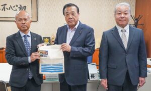 山本常務は「交通事故防止に役立ててほしい」と話した。玉名地区交通安全協会の作本幸男会長は「高齢者の事故が多く、啓発活動に重点を置いて活動をしている。大切に使いたい」と述べた。