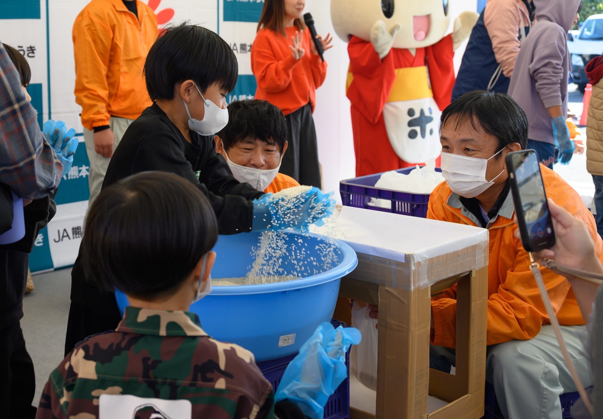 フェスタではミニトマトすくいや、みかんンジュース作りなど子どもが楽しめるチャレンジブースを中心に、芋堀り大会や新米すくい、餅つきなどJAならではのイベントを実施。農産物の販売やカスミソウとトルコギキョウを使用した撮影ブース、特産であるイ草を使用した畳ブースも設置し、地域の農産物の重要性を理解してもらいながら、魅力を発信した。