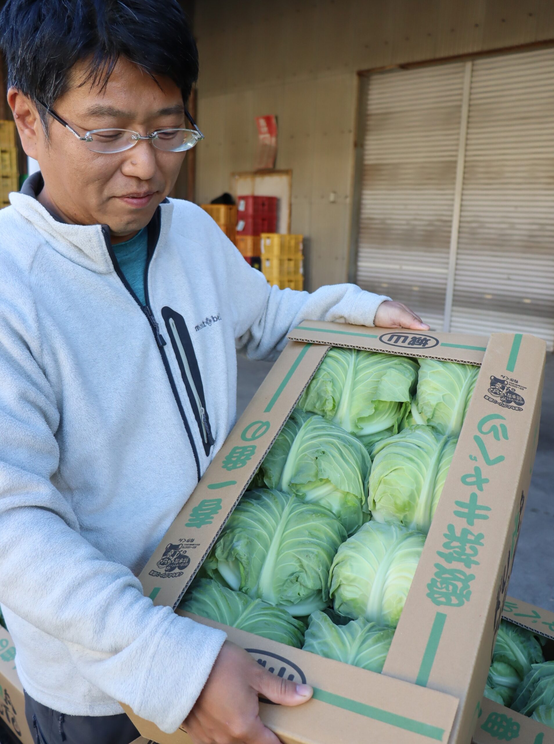 荷受けしたキャベツを確認する下村部会長