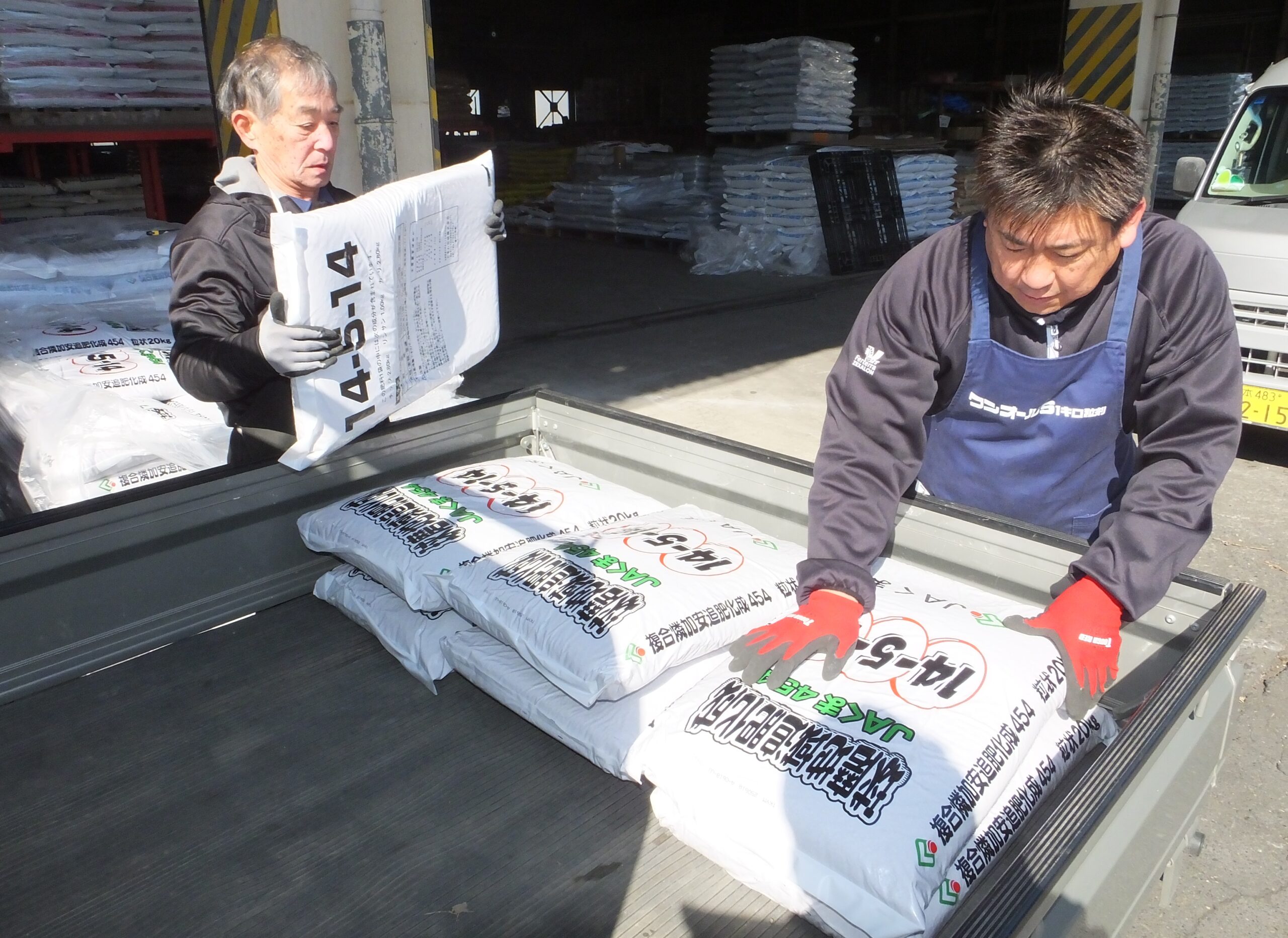 トラックに積み込まれるPB肥料
