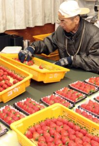 イチゴは、エチレンガス除去装置を設置した予冷庫で予冷し、選別後に集荷。検査後、保冷庫で保管して出荷する。鮮度をを保ったまま消費地へ届く。