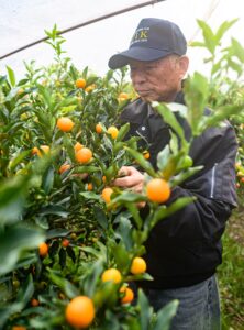 管内では、美里町の2戸が約30アールで栽培する。同町でキンカンを20年以上栽培する東田誠司さん(80)は「夏の暑さや冬の寒さなど、管理作業には苦労が絶えないが、今年も無事に収穫を迎えた。おいしいキンカンを食べてほしい」と話した。