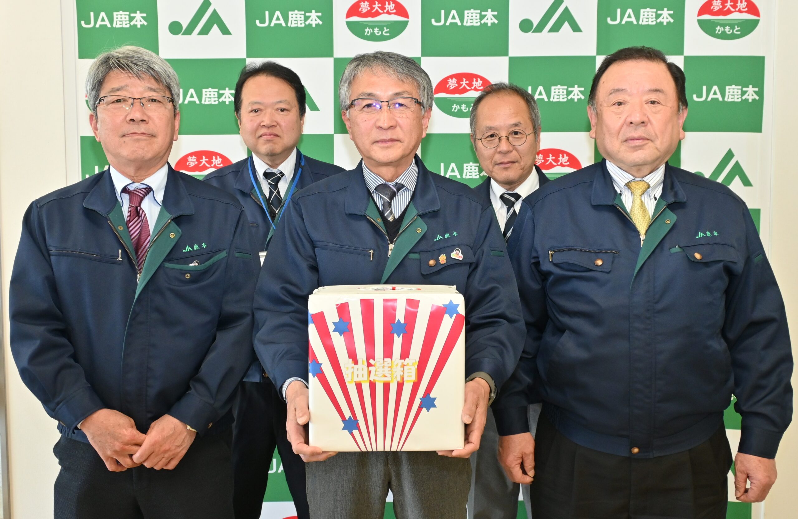 JA鹿本は2月上旬、山鹿市のJA本所で2025農機自動車展示会の抽選会を行った。抽選対象は昨年11月に開いた同展示会でトラクター、コンバイン、田植え機などの農業機械や自動車を購入した人。