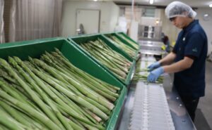 JA菊池アスパラガス部会は20日、春芽の出荷を始めた。初日は50.6キロを県内の市場へ出荷。今後、収量は増加し、3月中・下旬に最盛期を迎える見込みだ。今後は大阪、名古屋にも出荷する予定。