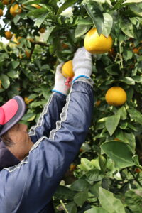 ジューシーオレンジを収穫する坂上さん