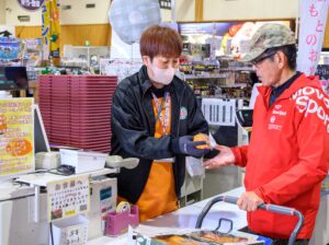 同館は当日に来店し、レジを通過した先着333人を対象に、デコポン1玉をプレゼント。利用客は笑顔でデコポンを受け取った。その他デコポンの特価販売などで、デコポンの日を盛り上げた。来店客は「3月1日がデコポンの記念日であることを初めて知った。もらったデコポンを食べるのが楽しみ」と笑顔を見せた。